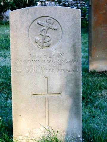 Stoker 2nd Class K/33421, H.M.S. Vivid, Royal Navy. Died from disease (Right Eurpyema) 13 September 1918. Aged 18. Born 13 August 1900 in Holt, Norfolk. Son of Mrs. Susanna Elvin, of Holt Rd., Newgate, Cley-next-the-sea.  Prior to enlistment he was a Butcher's Assistant, enlisted 27 August 1918 for 12 years, hegiht 5 feet 8½ inches, chest 36½ inches, dark brown hair, blue eyes, fresh complexion. Buried in North-East part of Cley-Next-The-Sea (St. Margaret) Churchyard.