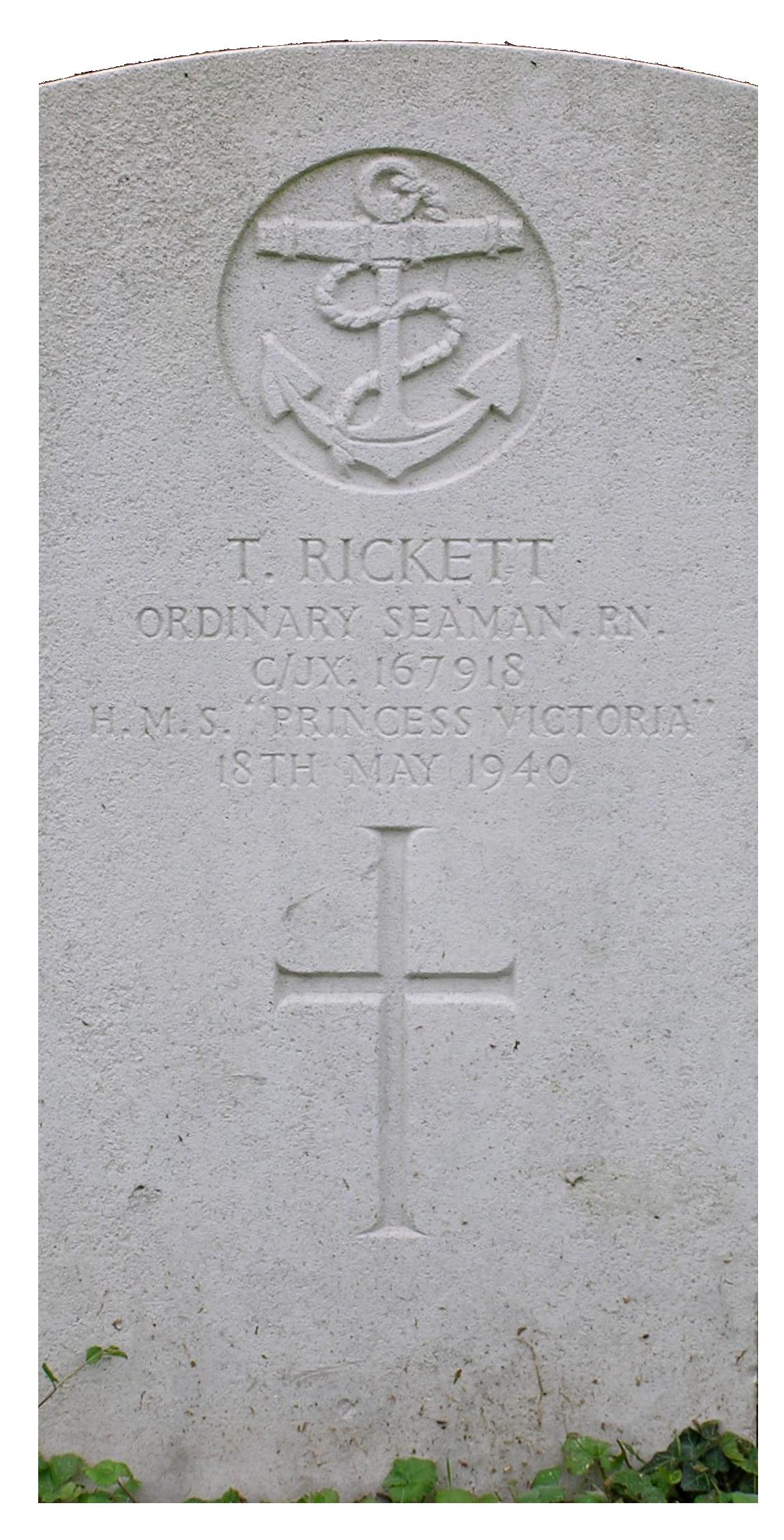 Ordinary Seaman C/JX 167918, H.M.S. Princess Victoria, Royal Naval Volunteer Reserve.  Killed when his ship, a minelayer, sank after striking a mine at the mouth of the River Humber, 18 May 1940. Buried Cley-Next-The-Sea (St. Margaret) Churchyard.