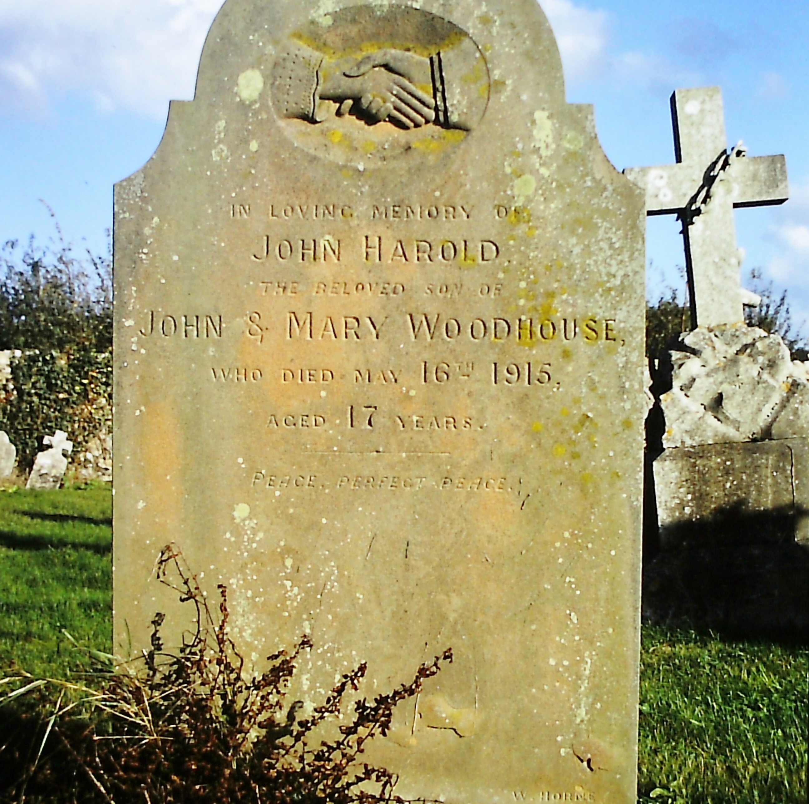 Private 3786,  2nd/4th Battalion, Norfolk Regiment.  Died at home on 17 May 1915.  Aged 18.  Enlisted Norwich.  Son of John W. and Mary Woodhouse, of Swans Lodge, Holt. Buried in North-East part of Cley-Next-The-Sea (St. Margaret) Churchyard.
