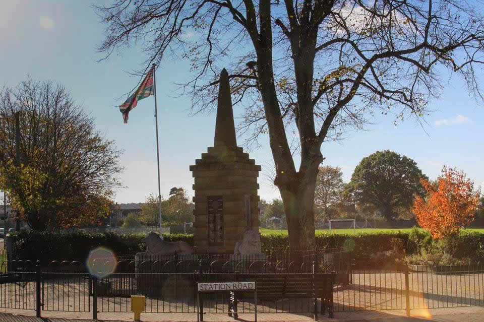 traffic lights. It takes the form of a small obelisk mounted on a layered