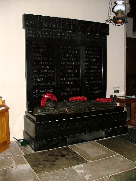 Ditchingham is situated next to Bungay on the Norfolk / Suffolk border. The War Memorial is huge and made from marble, with a life-size bronze figure at its base. It was designed by Derwent Wood. For more information and pictures of Ditchingham church please see Simon Knott's Norfolk Church Website