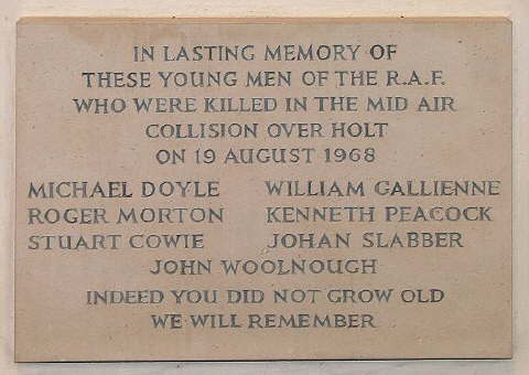 died in an aircraft accident over Holt in 1968. There is also a stain