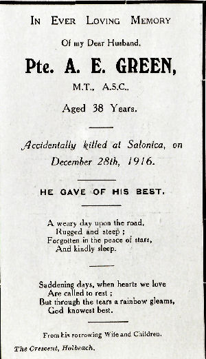 Memorial. Aged 23. Born St. Nicholas', King's Lynn. Son of Osborne