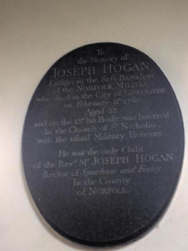 There is a memorial to a soldier who died in the service of The Crown from a much earlier generation (apologies for the blurred photo)