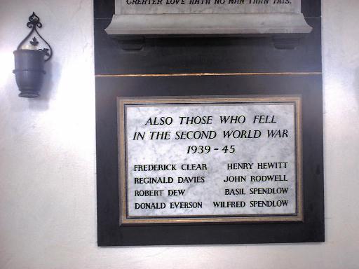 The Second World War Memorial is a plaque below the above memorial.