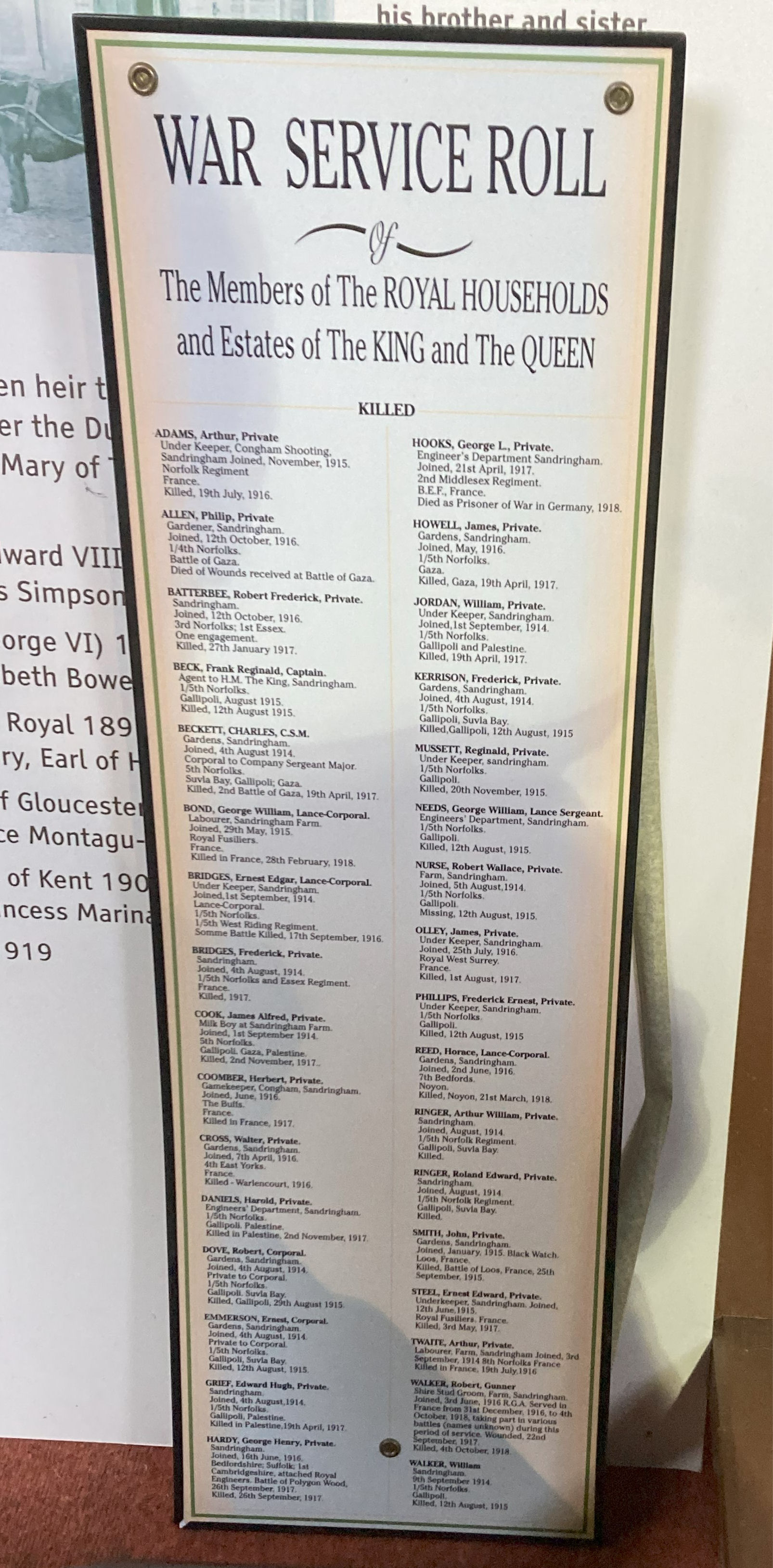Lynn. Employed on the Sandringham Estate. No known grave. Commemorated