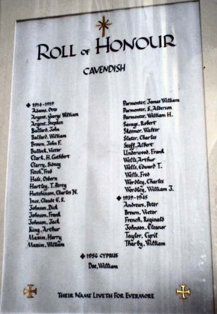 Buried in CAVENDISH CEMETERY, Suffolk, United Kingdom. |