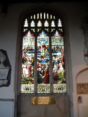 Colonel Commandant, 16th Briagde, Royal Artillery. Son of Richard Moore of Kentwell Hall. Born Kentwell 11th May 1807. Died 16th December 1879. Served with distinction during the latter aprt of the Burmese War and throughout the first Chinese War 1840-1851. Stainglass window and plaque erected by his widow.