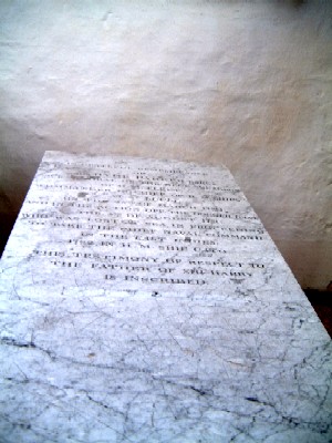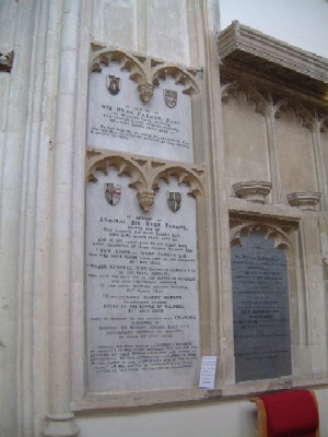 [Diificult to read] ... Squadron of H.M. Fleet, Commander in Chief of H.M. Ships at St Lucia. On the 26th March 1780, and in the action off the Dogger Bank the 5th August 81, who was lost at sea in proceeding to take Chief Naval Command of the East Indies, 1782, in H.M. Ship Cato. This testimony of respect to the father of Sir Harry is inscribed.