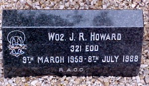 | HOWARD | John Robert | Warrant Officer 2 Class 24305257, 321 EOD Company, Royal Army Ordnance Corps. Died 8 July 1988. Aged 29, born 9 March 1959, RAOC, killed when he stepped on a pressure plate connected to an IRA booby trap bomb on the Falls Road. He was part of a unit carrying out a follow up examination of the area after an earlier bomb went off killing two people. He was the first member of the bomb squad to be killed since 1981. Commemorated on The Roll of Honour for THE FELIX MEMORIAL GARDEN, THIEPVAL BARRACKS, LISBURN, Co. ANTRIM, Northern Ireland.