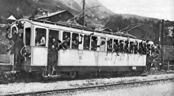 WIVES.  The War Office has found it necessary to issue a statement announcing that information has been received from Switzerland that the accommodation for relatives of British non-commissioned officers and men interned in that country is very limited, and that only fifty persons can be accommodated at Chateau d'Oex and ten at Leysin, while no accommodation is available at present at Morren. It is also intimated that children under the age of sixteen cannot be permitted to proceed to Switzerland. In these circumstances the number of relatives proceeding to Chateau d'Oex and Leysin at any one time must be strictly limited. It has accordingly been- arranged that only two relatives per prisoner can be allowed to go to Switzerland. The prisoner of war must himself select the relatives whom he wishes to visit him. He must , furnish their names axed addresses to the British Military Attaché in Switzerland. Singing “It's a long way to Tipperary,” the second party of soldiers' wives, on their way to Switzerland to visit their interned husbands, left Waterloo Station yesterday | Cotton Factory Times - Friday 1 September 1916, page 5: Interned
