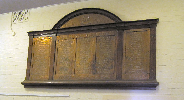 the memorial is in a corridor of the main building. 1914-1919THESE DIED FOR BRITAIN
