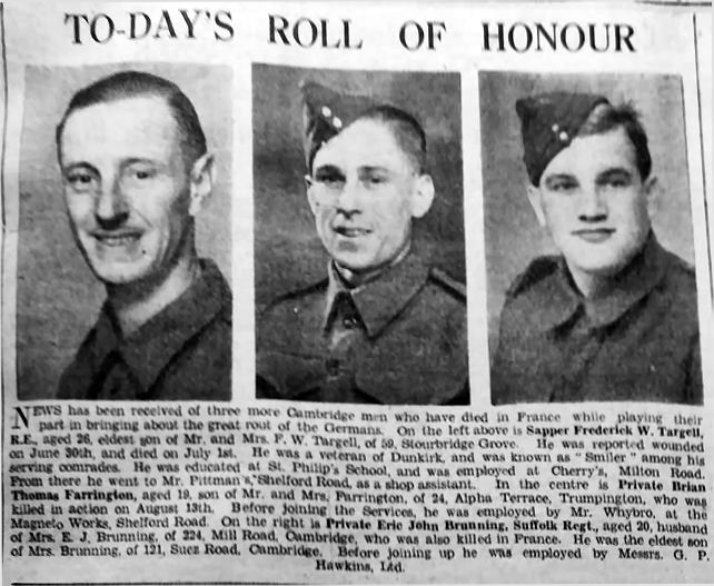 Pilsworth, of Romsey Town, Cambridge. No known grave. Commemorated
