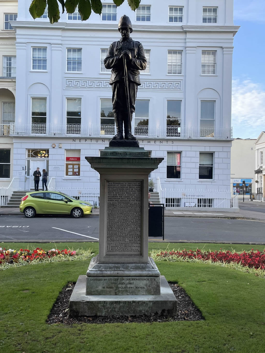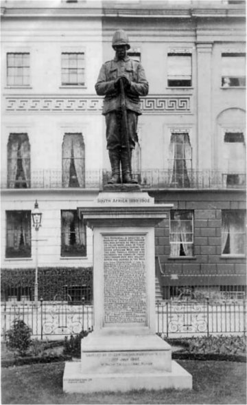 This memorial is erected in memory of those Cheltenham men, who, either as regulars, or volunteers, died in their country's service, during the South African war, and on the side panels hereof are recorded the names of those Cheltenham men who volunteered, and served in the war.