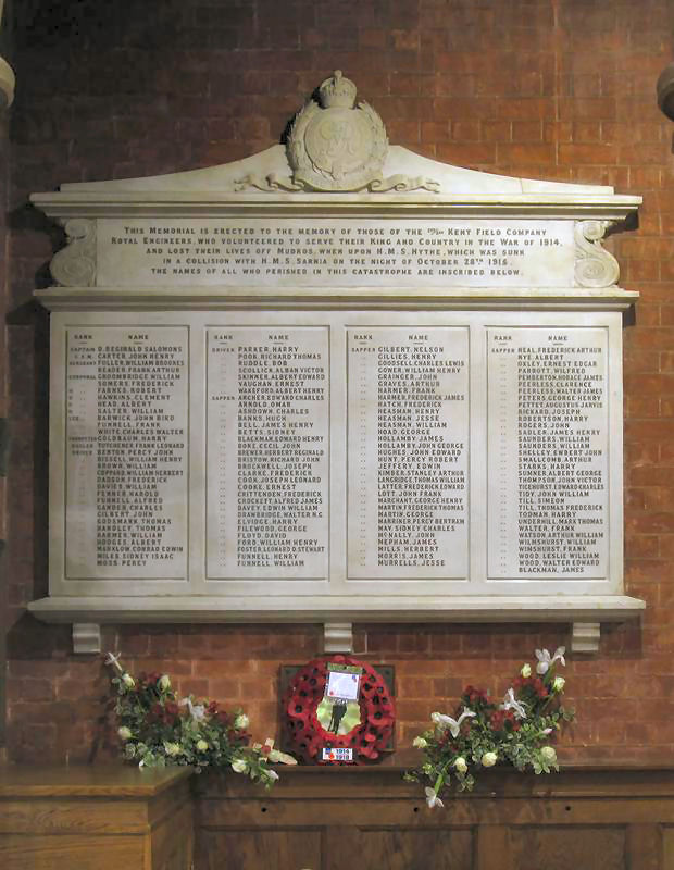WELLS HMS HYTHE AND 1ST/3RD KENT FIELD COMPANY ROYAL ENGINEERS WAR MEMORIAL