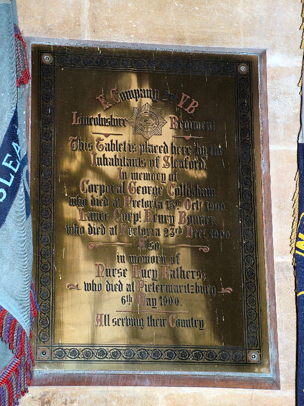 This tablet is placed here by the inhabitants of Sleaford in memory of