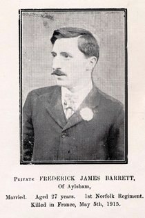 5 May 1915. Age 25. Born Aylsham. Enlisted Norwich. Husband of