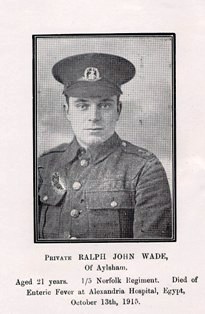 Aylsham. Enlisted Cromer. Buried in  PLOEGSTEERT MEMORIAL, Comines-Warneton,
