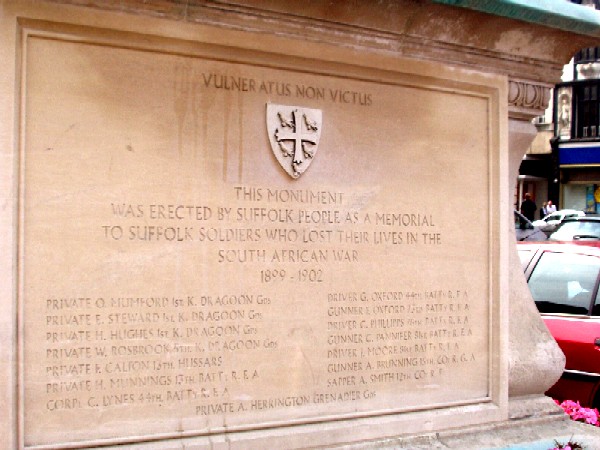 | MANCHESTER | W | Private 4964, 1st Battalion, Suffolk Regiment. Died of disease 12th December 1900 at Springfontein. |